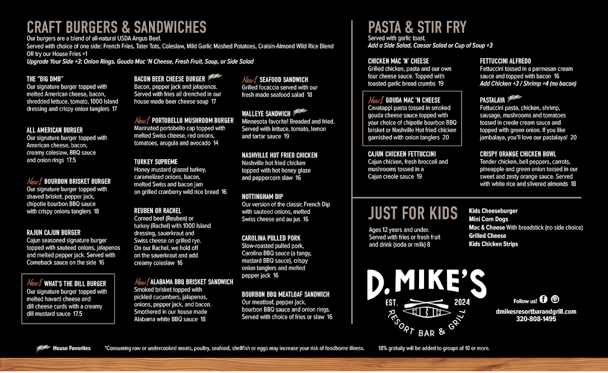 Welcome to D Mike's Resort Bar and Grill, an exciting dining destination in Alexandria, MN. This vibrant eatery captures the essence of flavor and community while serving up an impressive menu that caters to all palates.